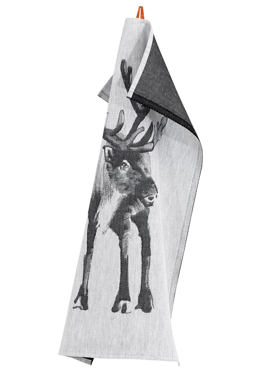 Linnen Theedoek Print Rendier (Grijs)