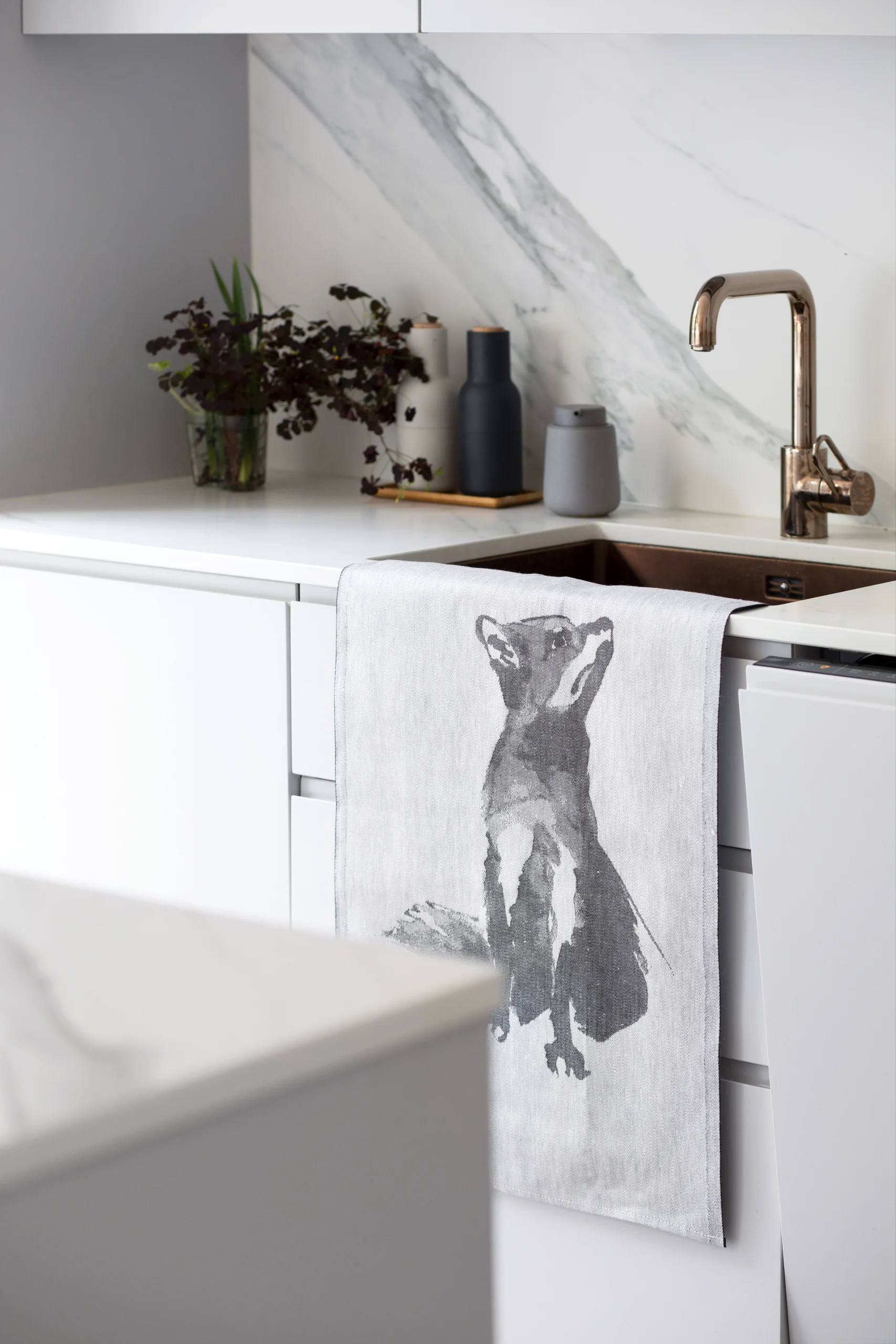 Linnen Theedoek Print Vos (Grijs)